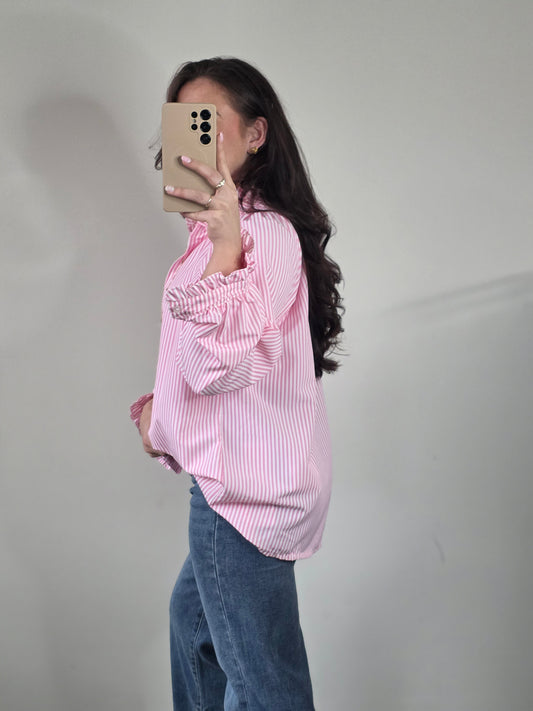 Striped ruffle blouse pink
