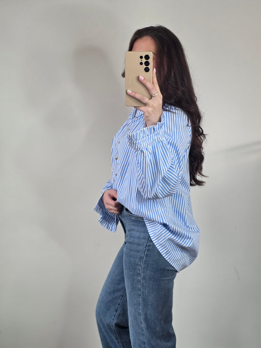 UitverkochtStriped ruffle blouse light blue