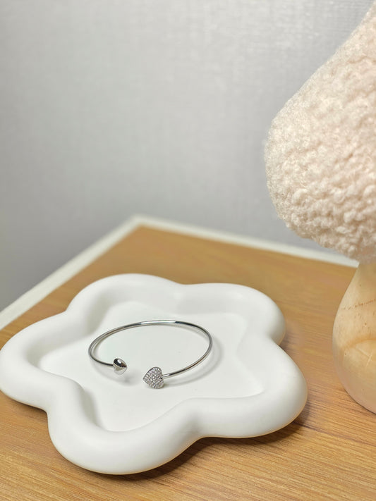 Diamond heart bangle silver